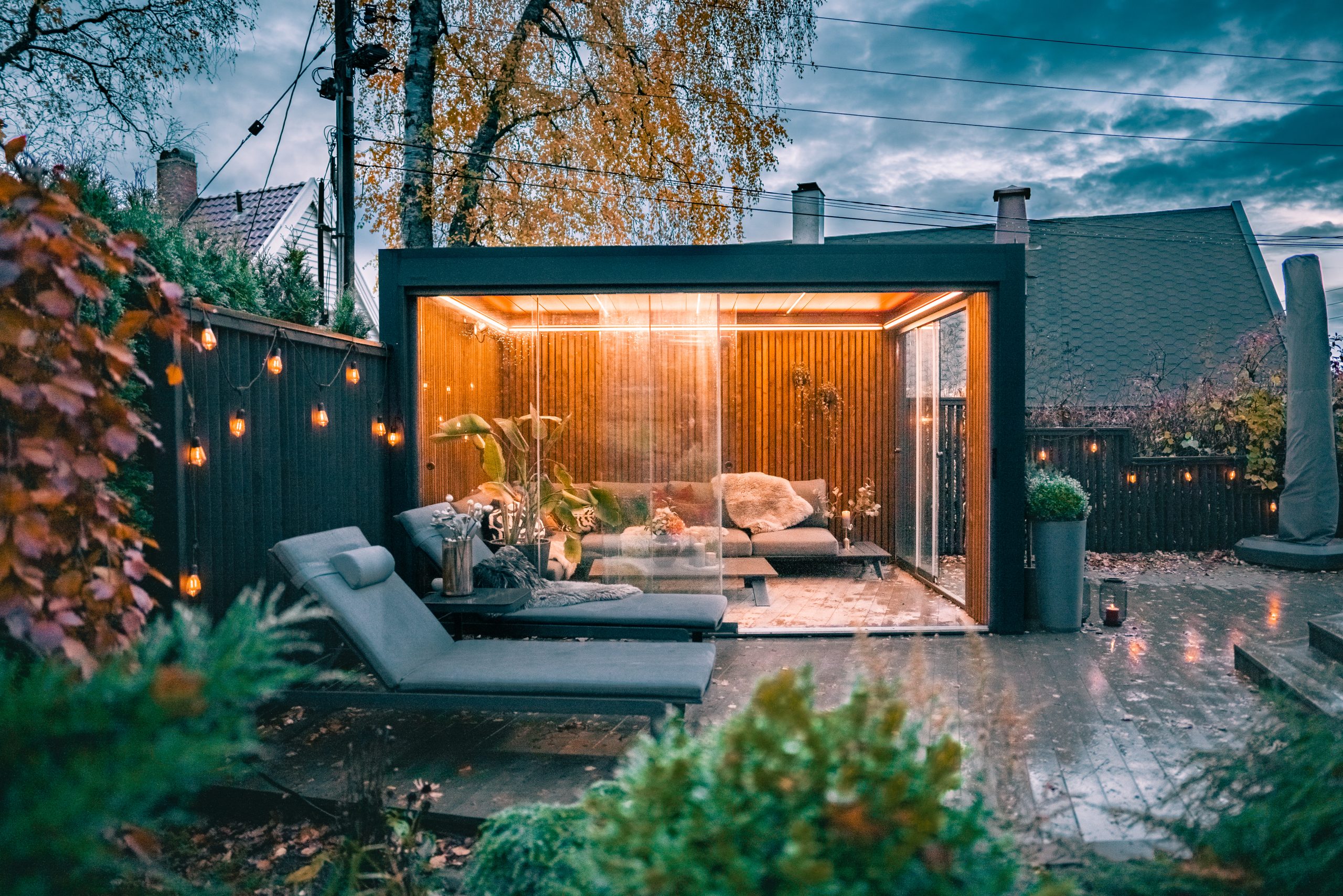 Skap et lunt, stilrent uterom med glassvegger. Behold utsikten, skjerm deg for vær og vind – og nyt uteplassen store deler av året.