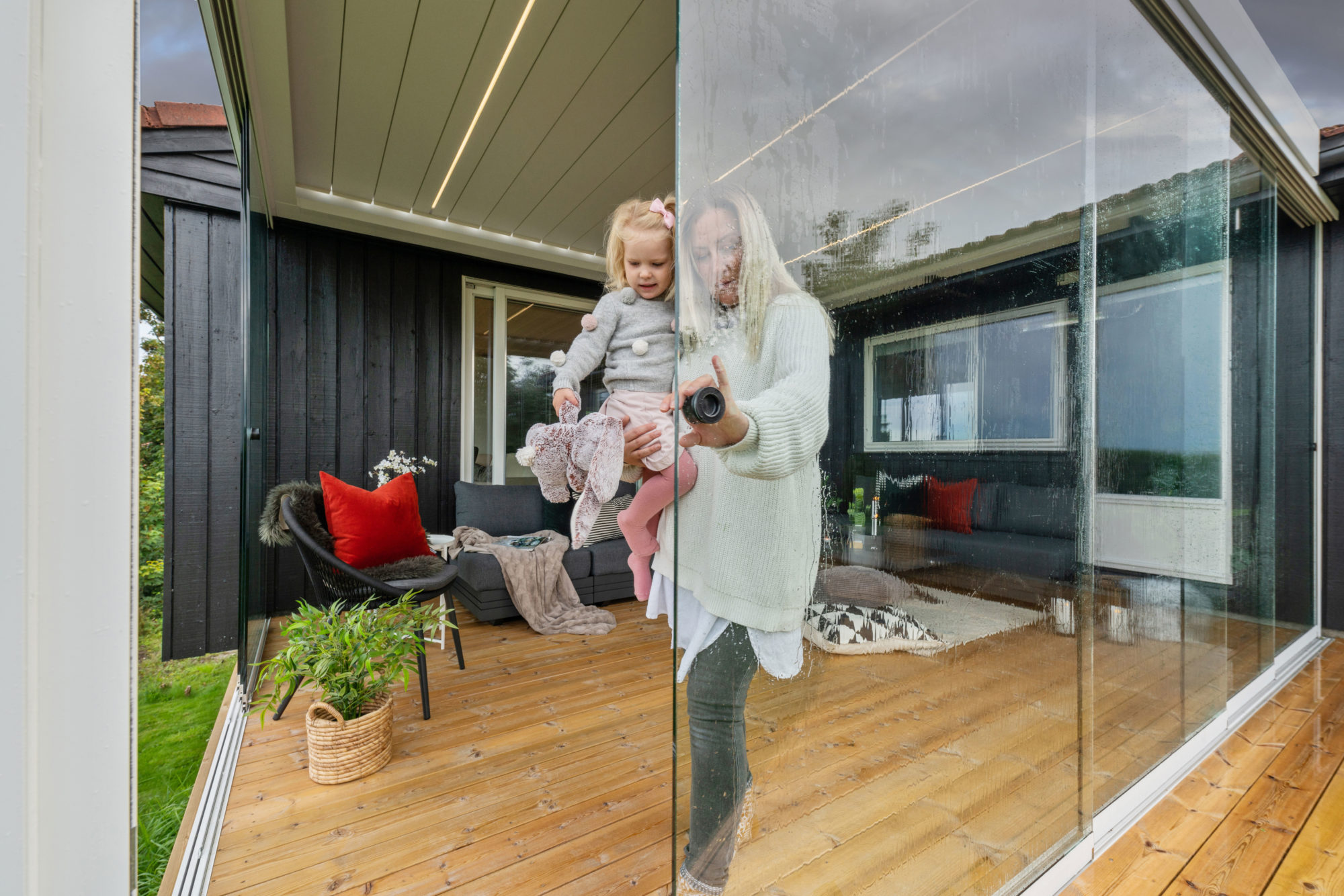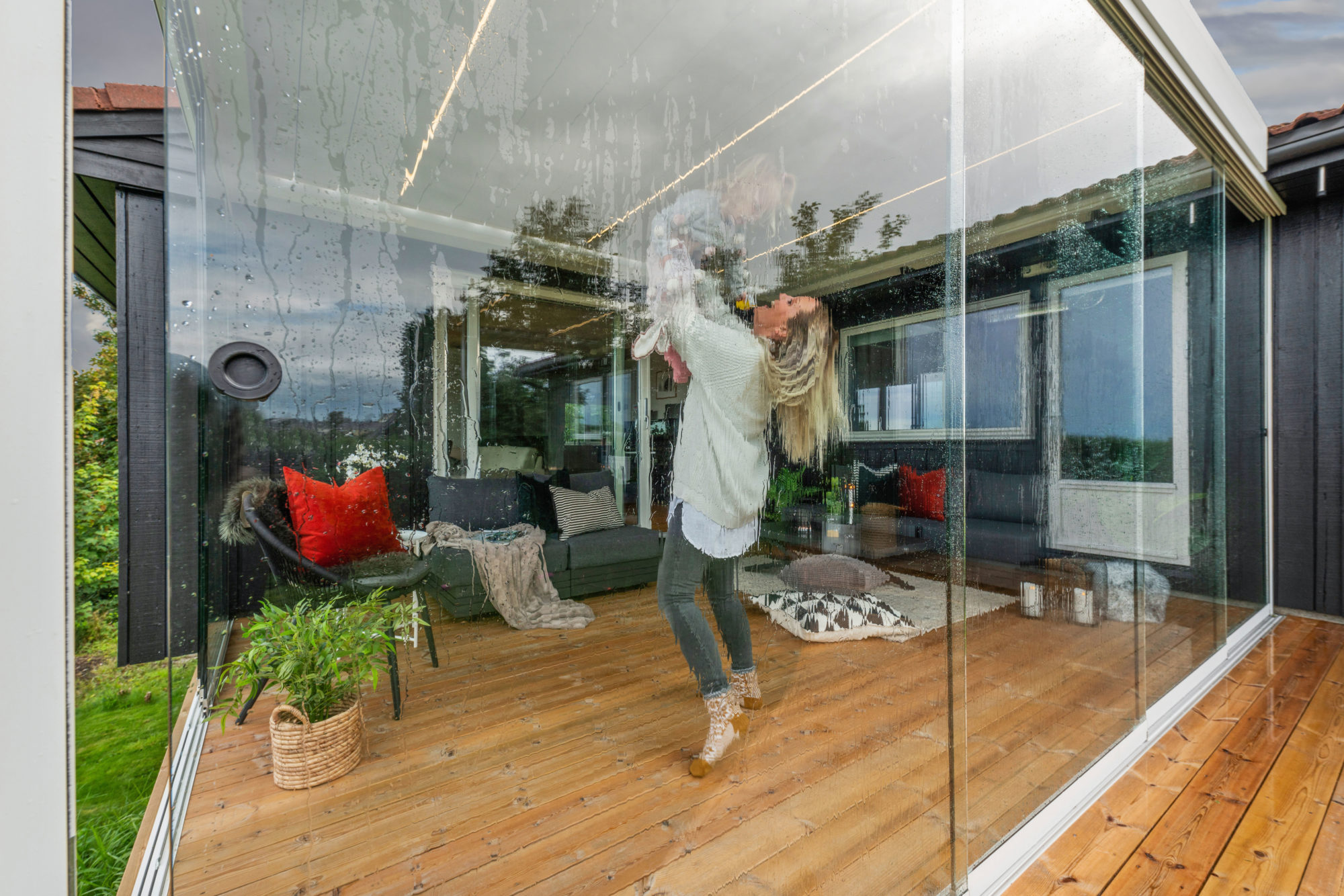 Med innglassing fra uteDESIGN får du et uterom du kan bruke gjennom alle sesonger – beskyttet mot vær og vind, men fortsatt åpent mot naturen.