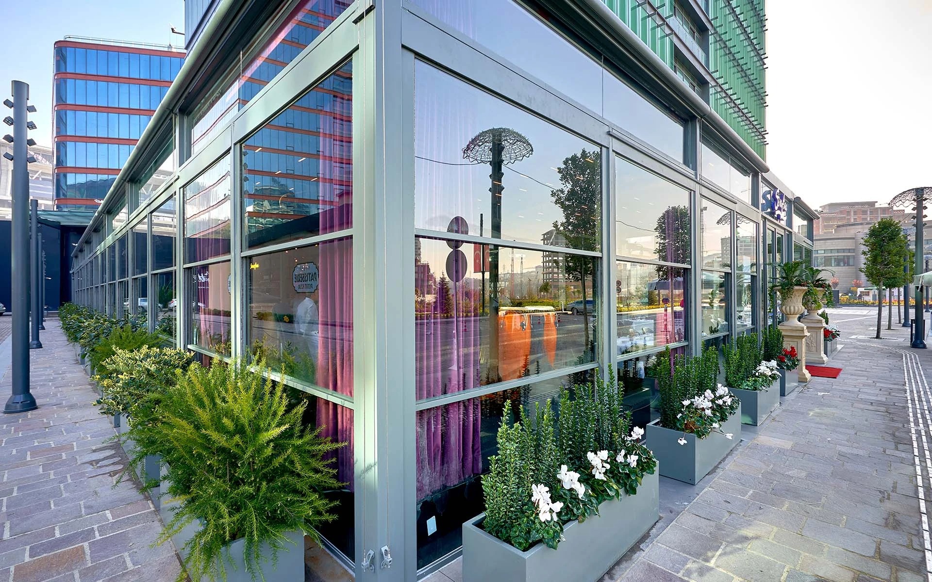 Denne innovative glassløsningen lar glasspanelene bevege seg vertikalt opp og ned i solide sideprofiler. Det gjør det enkelt å justere luftstrømmen, beskytte mot vind eller skape en lun atmosfære – perfekt både for private uteplasser og serveringssteder som vil tilby gjestene et komfortabelt miljø året rundt.