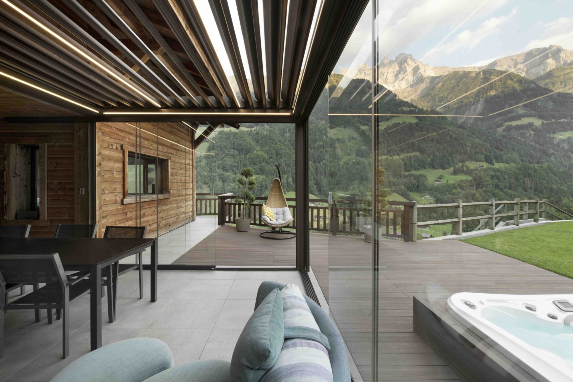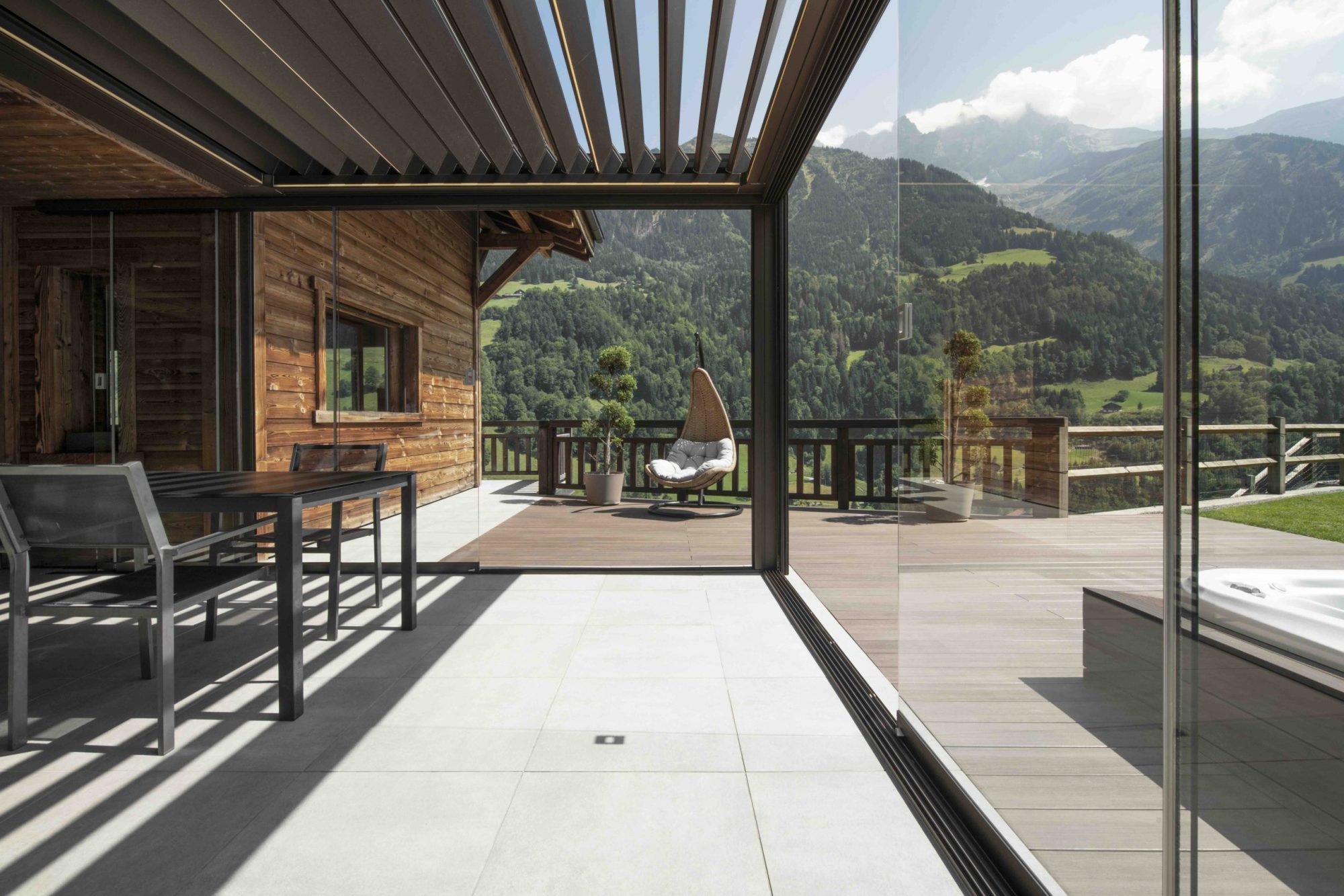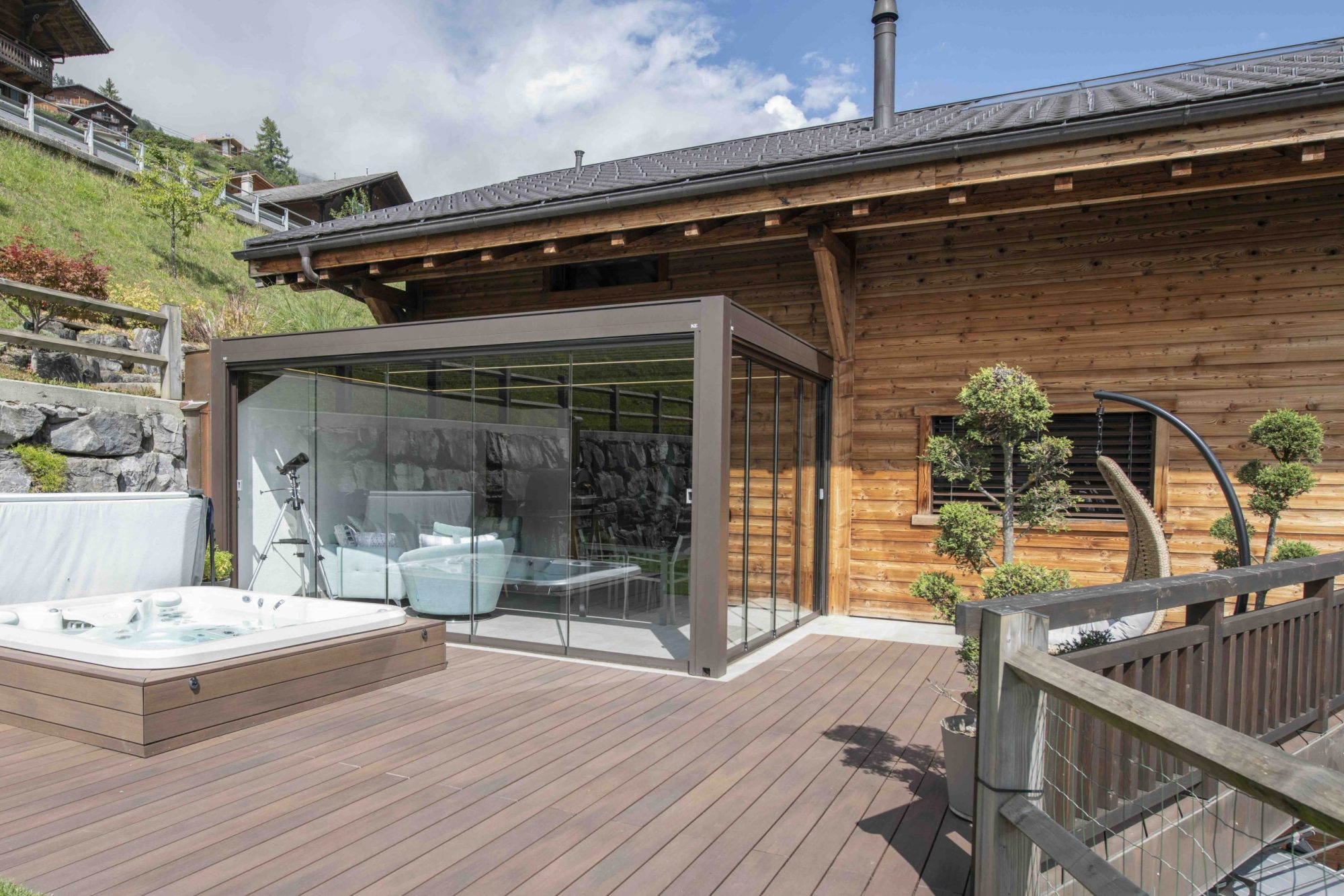 - Det kan lukkes med screens og skyvedører i glass