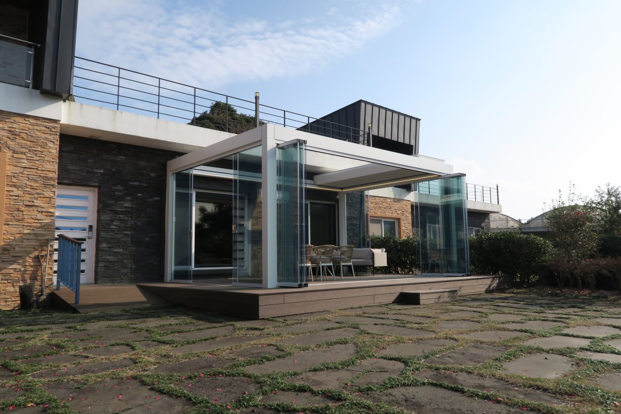 Gjør denne utestuen komplett ved å glasse den inn slik at du kan sitte ute selv når det regner eller blåser kaldt. Du kan også sette inn ZIP-screen som vil beskytte deg mot sol, innsyn, insekter og dempe vind slik at du alltid har maksimal komfort.