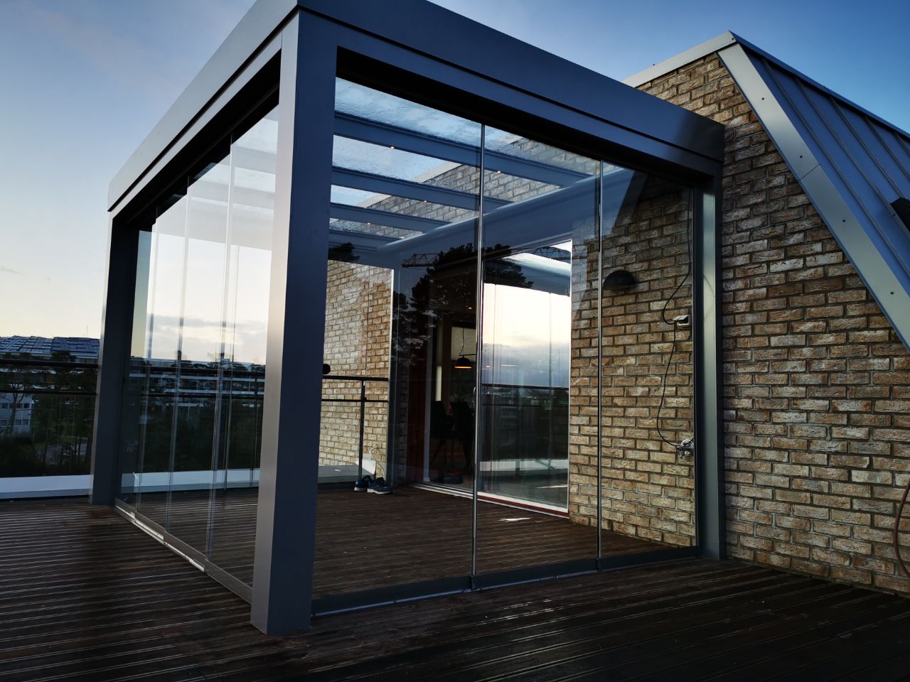 Konsulenten fra uteDESIGN AS fikk bistå dette sameiet i flere faser: først med en generalforsamling for alle beboere hvor det ble vedtatt hvilke produkter som harmonerer med byggets arkitektur – og som det var lov å montere. Merethe har også stilt opp hos kommunen for å presentere skisser og tekniske tegninger. Samarbeidet har resultert så langt i tre glasstak på sameiets takterrasser og skyveglass eller andre typer innglassing på ytterligere fire enheter.